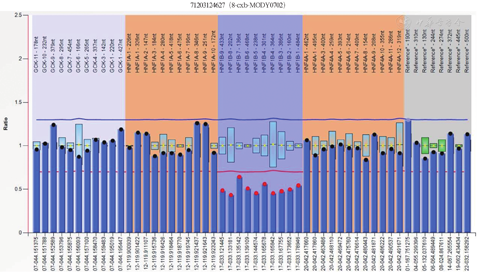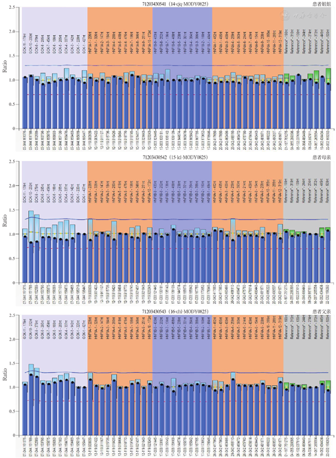 注:基因检测提示HNF1B基因exon 1-9无杂合缺失(箭头示)