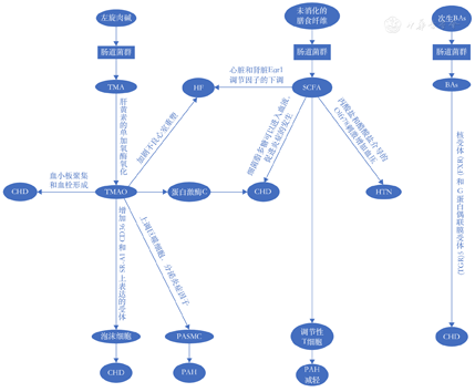 注:BAs,胆汁酸;CHD,冠心病;HF,心力衰竭;HTN,高血压;PAH,肺动脉高压;PASMC,肺动脉平滑肌细胞;SCFA,短链脂肪酸;TMA,三甲胺;TMAO,氧化三甲胺
