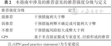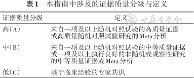 本指南中涉及的推荐意见的推荐强度分级与定义