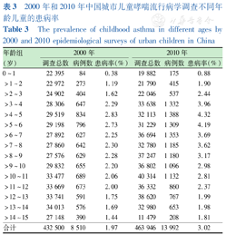 The prevalence of childhood asthma in different age groups by 2000 and 2010 epidemiological surveys of urban children in China