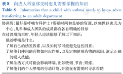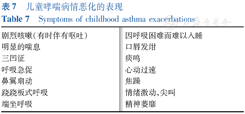 哮喘知识教育的内容应包括:(1)哮喘的本质、发病机制;(2)避免接触诱发哮喘发作的因素,并知晓家庭自我处理方法[290];(3)自我管理与监测,掌握PEF的测定方法、记哮喘日记,应用"儿童哮喘控制测试"等控制问卷,判断自身哮喘控制水平,并及时调整方案;(4)要了解各种长期控制及快速缓解药物的作用特点、药物吸入装置使用方法(特别是吸入技术)及不良反应的预防和处理对策;(5)哮喘发作的征象、应急措施和急诊指征;(6)心理因素在儿童哮喘发病中的作用。