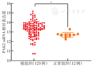 生物信息学数据利用R 4.2.1软件进行整理和统计学分析,利用Wilcoxon检验比较PAK2在癌组织和癌旁组织间表达的差异。临床数据利用SPSS 26.0软件进行统计学分析。计数资料以频数(%)表示,组间比较采用Fisher确切概率法。计量资料符合正态分布,以