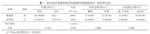 诱导化疗敏感和耐药的喉鳞状细胞癌患者一般资料比较