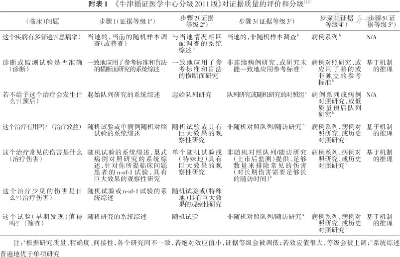 《牛津循证医学中心分级2011版》对证据质量的评价和分级[12]
