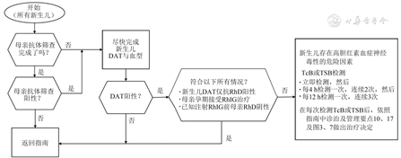 注:DAT为直接抗人球蛋白试验,RhIG为RhD免疫球蛋白,TcB为经皮胆红素,TSB为血清总胆红素