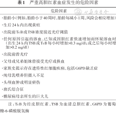 存在高胆红素血症风险的新生儿(表1)需要更密切地监测。明确危险因素后要对新生儿进行体检、评估实验室检查结果、询问有关血液系统疾病或新生儿黄疸家族史。