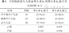 | 组别 | 例数 | 维生素K1缺乏 | 维生素K2缺乏 |