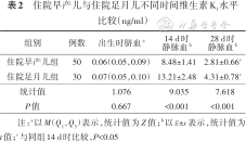 住院早产儿与住院足月儿不同时间维生素K1水平比较(ng/ml)