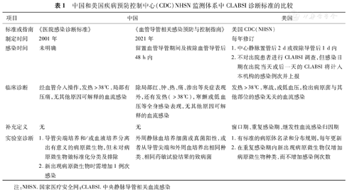 中国和美国疾病预防控制中心(CDC)NHSN监测体系中CLABSI诊断标准的比较
