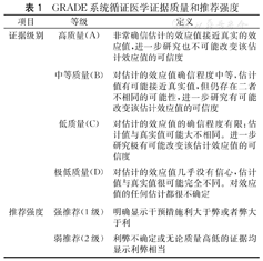 本共识基于推荐分级的评估、制定与评价(grade of recommendations assessment,development and evaluation,GRADE)系统对支持各诊疗方法的循证医学证据进行分级,包括证据推荐程度及质量分级[2](表1)。