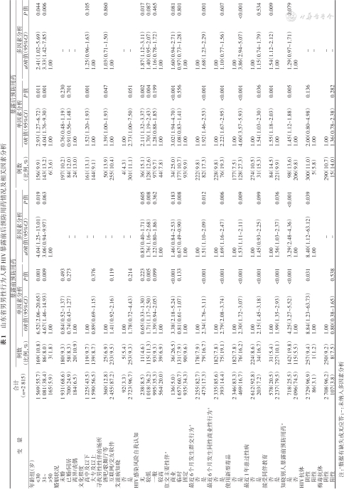 综上所述,山东省MSM的PrEP/PEP用药比例较高,应加强同伴教育和自我认知HIV风险教育,提高MSM中PrEP/PEP用药的使用率。另外,MSM年龄较大、主要性伴为临时性伴者的PrEP用药情况较差。今后应根据不同亚人群特征采取针对性宣传教育和推广措施,并借助社交网络等媒介提高工作时效性,促进MSM了解和接受PrEP/PEP用药。