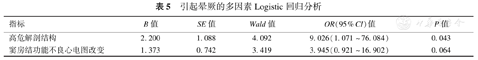 | 窦房结功能不良心电图改变 | 1.373 | 0.742 | 3.419 | 3.945(0.921~16.902) | 0.064 |