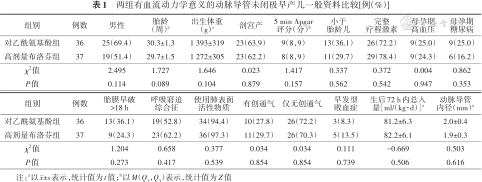 两组有血流动力学意义的动脉导管未闭极早产儿一般资料比较[例(%)]