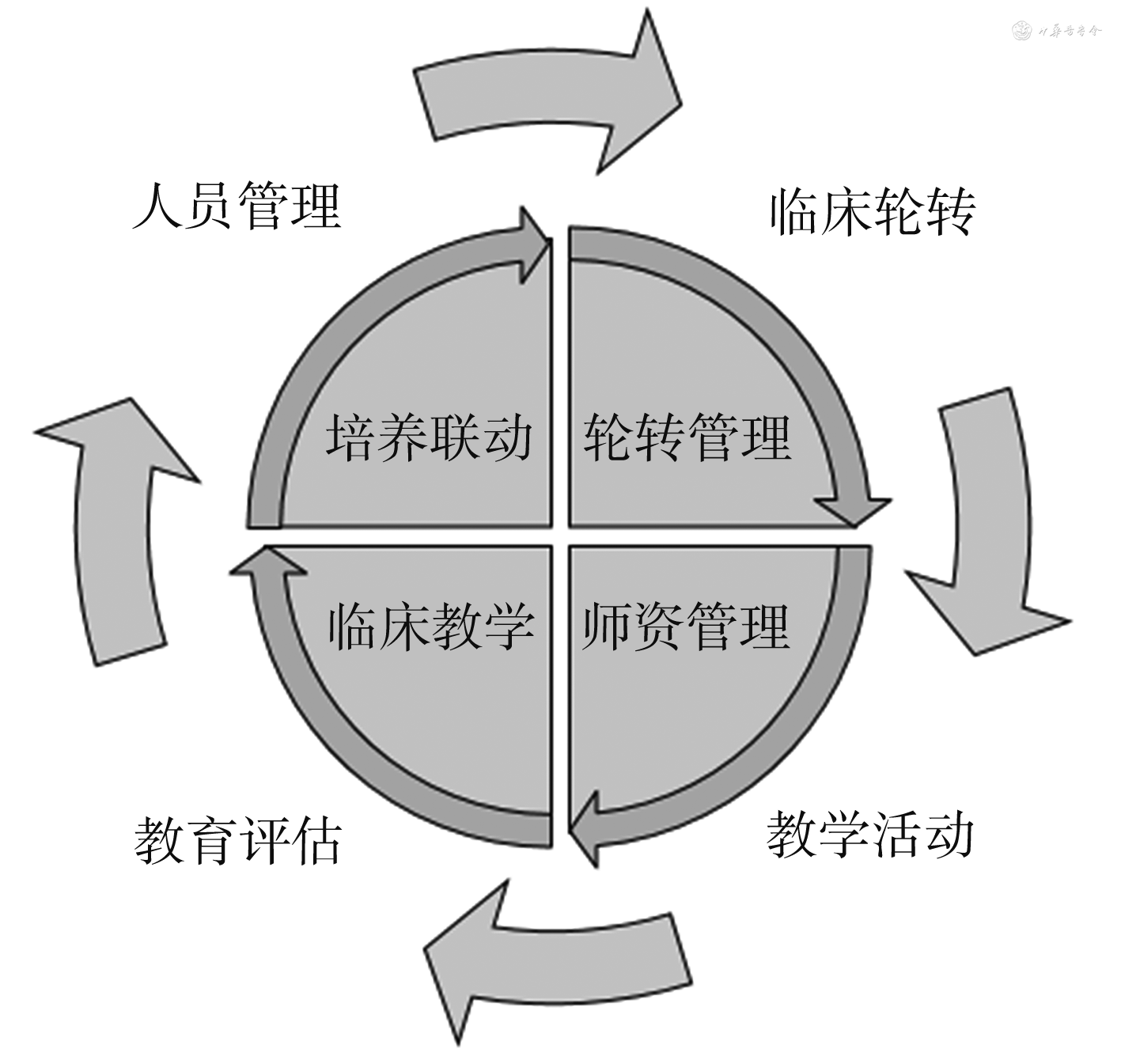 住院医师进入医院真实医疗环境,接触病人,获得临床科室及带教师资专业的指导,是其从医学生转变为临床医师、将医学知识转化为临床技能的重要环节。临床轮转质量直接反映了住培质量的高低。培训管理部门协同专业基地进行临床轮转管理,主要包括指导医师带教分配、入科教育、教学活动、出科考核、轮转评估、值班与考勤等。