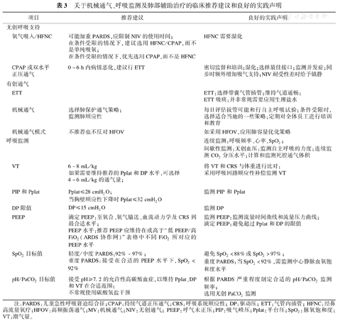 | 血流动力学监测 | 监测和评估机械通气对左右心功能的影响;在重症PARDS中利用动脉留置监测血压和动脉血气;心脏彩超监测重症PARDS或怀疑左右心功能受累的患儿 | |