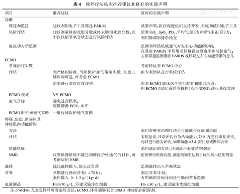 PARDS患儿ECMO治疗的时机和标准仍没有明确推荐,借鉴于体外生命支持组织指南的更新[17],推荐PARDS患儿采用静脉-静脉-ECMO模式治疗,并需要缓慢降低血气中的PCO2水平。