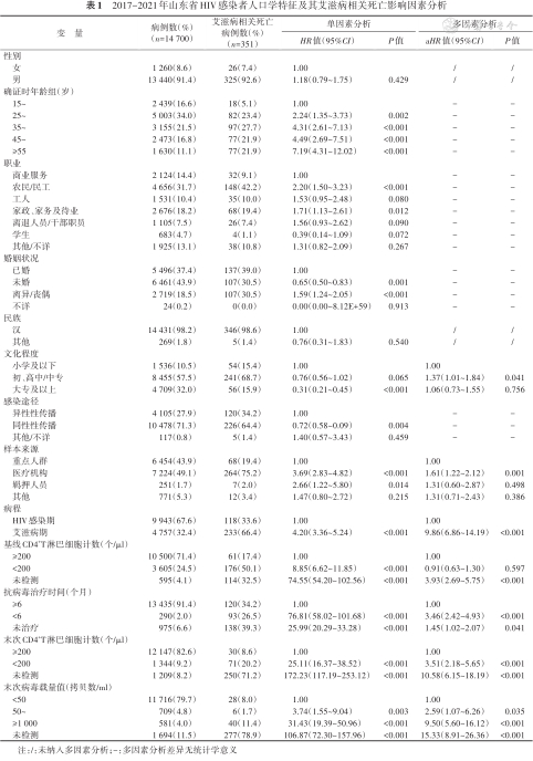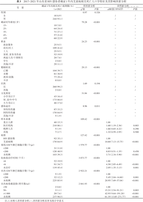 2017-2021年山东省HIV感染者人口学特征及其艾滋病相关死亡影响因素分析