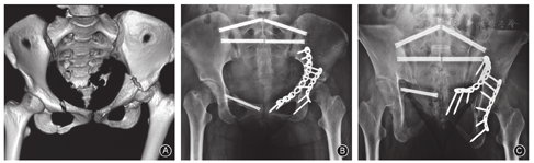 Schildhauer等[23]应用切开复位髂腰三角固定治疗骶骨DenisⅠ、Ⅱ区骨折或骨盆骨折合并腰骶结合部损伤等取得了满意疗效。
