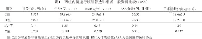 两组内镜逆行胰胆管造影患者一般资料比较(n=58)