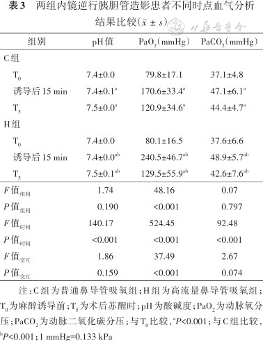 两组内镜逆行胰胆管造影患者不同时点血气分析结果比较()