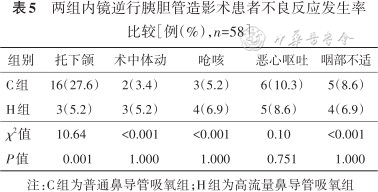 两组内镜逆行胰胆管造影术患者不良反应发生率比较[例(%),n=58]