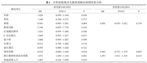 | 病程 | 0.983 | 0.965 ~ 1.001 | 0.064 | 0.991 | 0.970 ~ 1.012 | 0.376 |