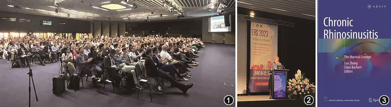 与我们2023长沙全国鼻科会相比,本次会议最新的进展并不很多,特别在Ⅱ型慢性鼻窦炎的研究进展领域,我们的研究和诊疗水平已经达到国际领先水平,但规范化培训、生物学治疗领域,还有一定差距。在鼻眼相关领域,我们需与眼科加强合作,利用学科交叉,克服鼻眼相关疾病的手术难题,进一步优化手术入路和治疗理念。在内镜颅底外科领域,多学科,特别是与神经外科、肿瘤科、影像科的合作,规范化培训,把临床经验、研究成果提炼成书籍在国际舞台上与同行分享,值得我们关注。令人欣慰的是,在Springer的展架上,我们看到了张罗教授团队编写的《Chronic Rhinosinusitis》(图3),希望这是一个良好的开端。下一届ISIAN和IRS将在2024年4月在日本东京举行,期待中国鼻科学者在国际舞台上展示真正的实力,与国外学者进行充分交流。
