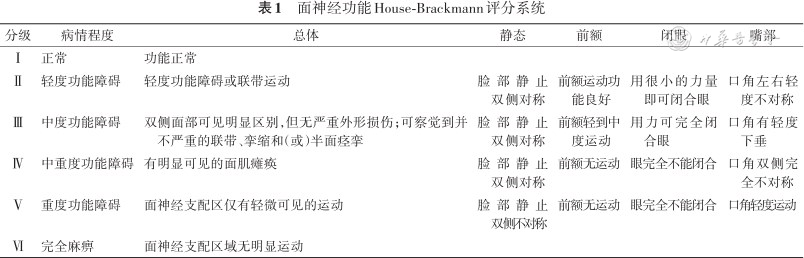 | Ⅵ | 完全麻痹 | 面神经支配区域无明显运动 | ||||
