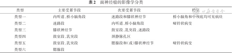| 类型一 | 内听道、桥小脑角段 | 迷路段和膝状神经节 | 桥小脑角和中颅底均可见病灶 |