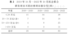 2019年10月—2022年10月医企联合研发项目不同经费项目数分布(项)