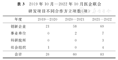 2019年10月—2022年10月医企联合研发项目不同合作方立项数(项)