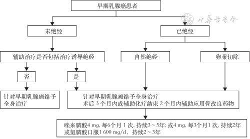 早期乳腺癌辅助治疗中应用双膦酸盐预防骨转移、改善生存获益临床推荐路径见图2。