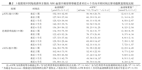 比较活体亲属ABO血型不相容肾移植(ABO-incompatible kidney transplantation,ABOi-KT)受者应用不同种类免疫诱导方案的早期(术后6个月内)临床结局。