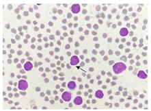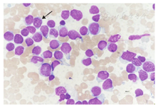 注:箭头示异常原始细胞。AUL为急性未分化白血病
