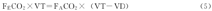 FĒCO2、FACO2和FICO2分别为混合呼出气、肺泡气和吸入气CO2浓度分数。由于吸入气中通常不含CO2(FICO2=0),因此: