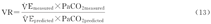 Epredicted是预测的分钟通气量,按照预测体重取100 ml·kg-1·min-1。PaCO2measured是测量的PaCO2,PaCO2predicted是预测的PaCO2,取37.5 mmHg(1 mmHg=0.133 kPa,即5 kPa)。对于给定的个体,VEpredicted和PaCO2predicted是恒定的。因此,结合公式(11),公式(13)可以重写为: