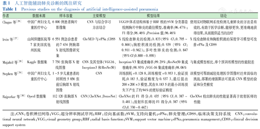 注:CNN:卷积神经网络;VGG:超分辨率测试序列;RBF:径向基函数;SVM:支持向量机;ePNa:肺炎管理;CDSS:临床决策支持系统