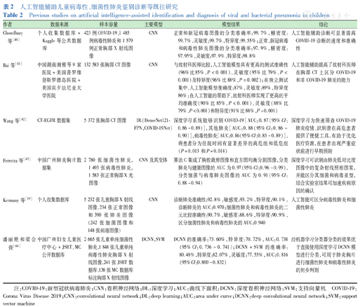 注:COVID-19:新型冠状病毒肺炎;CNN:卷积神经网络;DL:深度学习;AUC:曲线下面积;DCNN:深度卷积神经网络;SVM:支持向量机