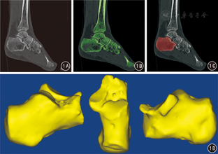 在正常人CT薄层影像数据基础上建立跟骨骨折Sanders分型的数字化仿真模型。