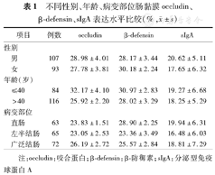 | 项目 | 例数 | occludin | β-defensin | sIgA | |