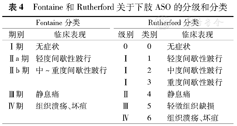 下肢ASO的严重程度可根据Fontaine分期和Rutherford分类法(表4)[3]。