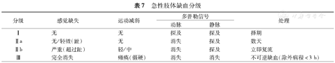 | 临床特征 | 不立即威胁肢体活力 | 如果及时治疗可挽救患肢 | 大量组织坏死,截肢不可避免 |