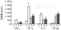hUC–MSCs–ex能降低CD3/CD28单抗刺激后的PBMC产生IFN–γ、TNF–α、IL–6,而增加TGF–β1的表达(图4)。
