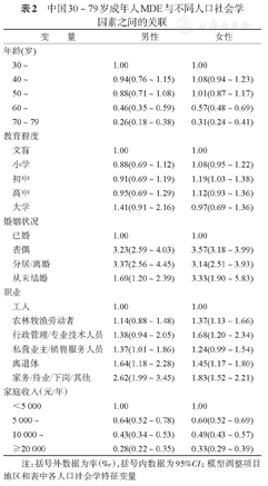 中国30~79岁成年人MDE与不同人口社会学因素之间的关联