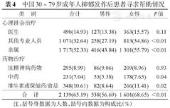 中国30~79岁成年人抑郁发作后患者寻求帮助情况