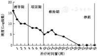 10例在我院住院和随访的初治隐脑患者脑脊液荚膜定量随访结果显示:在治疗过程中随着隐脑患者临床症状的改善,脑脊液炎症指标的逐渐好转,其抗原水平也逐渐下降,乳胶凝集试验及酶联免疫分析法的检测结果与临床改善均具有较高的符合度。监测荚膜抗原水平有助于判定患者病情变化及药物的疗效,隐球菌荚膜抗原的随访检测对疗效观察有重要价值[11]。在诱导期治疗结束时,两种方法检测的抗原水平都有明显的下降。两种方法定量检测治疗前荚膜抗原水平最高的是同一患者,该患者起病时病情重,颅内压很高,在药物治疗的同时使用ommaya泵穿刺降颅压。随着治疗的进展,荚膜抗原水平逐渐下降。患者在治疗第13周拔除ommaya泵,在图3及图4中可见抗原水平都呈现轻度的反跳现象,可能存在少量隐球菌黏附于ommaya泵有关。该患者在治疗的28周其抗原检测转阴,第49周停药。是否可以根据抗原水平决定疗程,有待增加临床病例进行系统研究。由于本研究的病例数较少,多数还在治疗期,已完成疗程的只有1人,同时标本收集处理、实验操作等方面可能存在误差,对于乳胶凝集试验与酶联免疫分析法的优劣,荚膜抗原检测对疾病预后价值的评估以及抗原检测转阴后的停药节点等问题,还有待于进一步扩大临床病例进行深入研究。