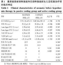 Clinical characteristics of neonates after hypothermia in passive cooling group and active cooling group