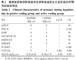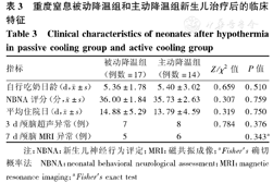 重度窒息被动降温组和主动降温组新生儿亚低温治疗期间的临床特征