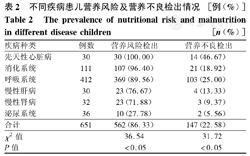 The prevalence of nutritional risk and malnutrition in different disease children[n(%)]