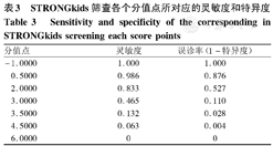 STRONGkids筛查各个分值点所对应的灵敏度和特异度